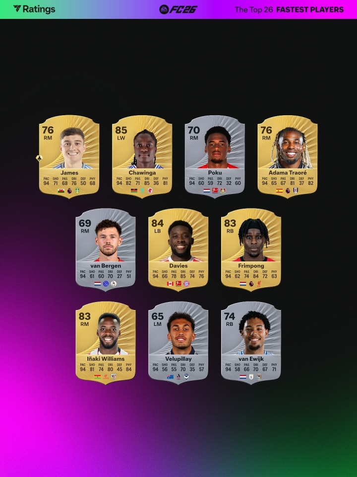 唯快不破⚡FC26速度:姆巴佩97居首维尼修斯下降1点变为95